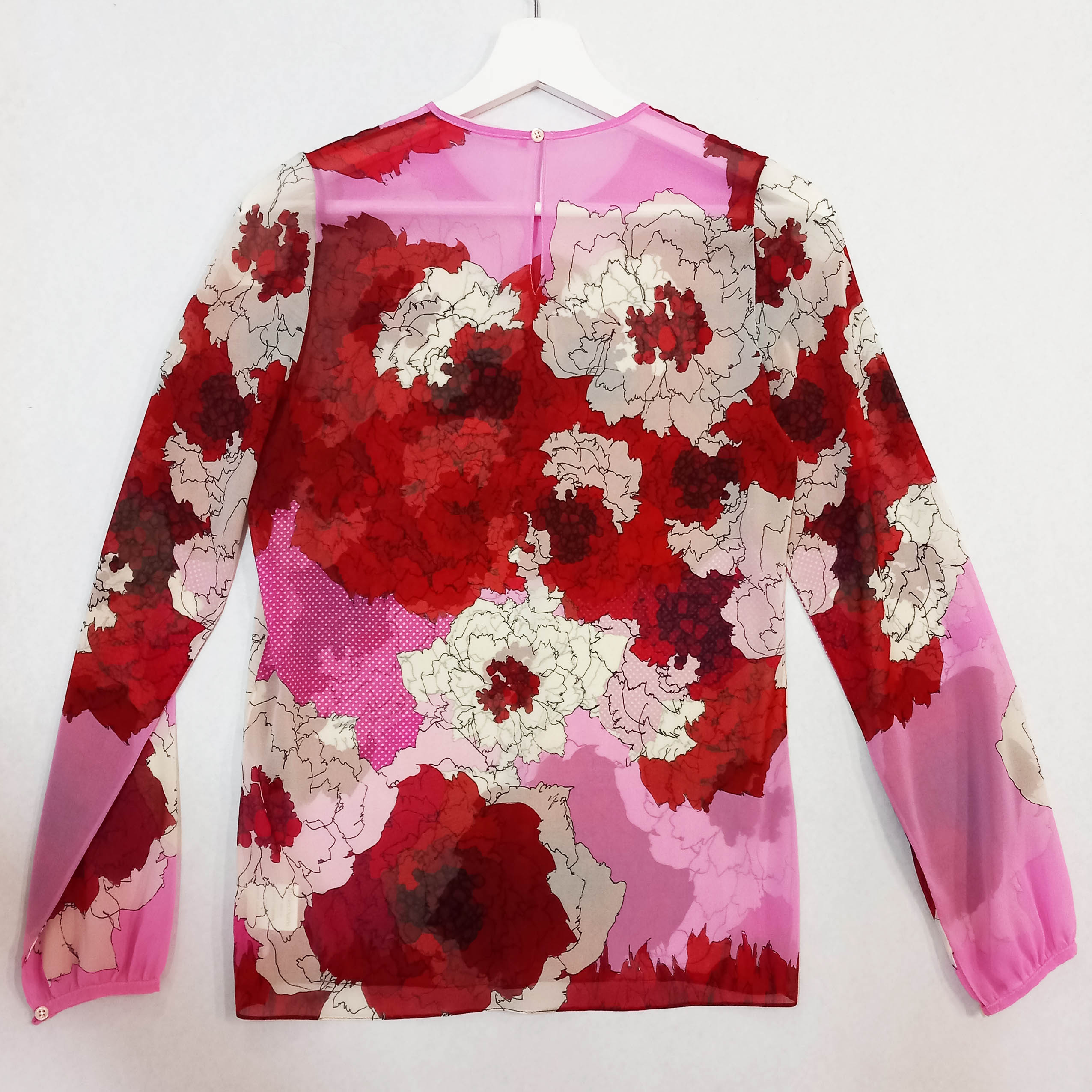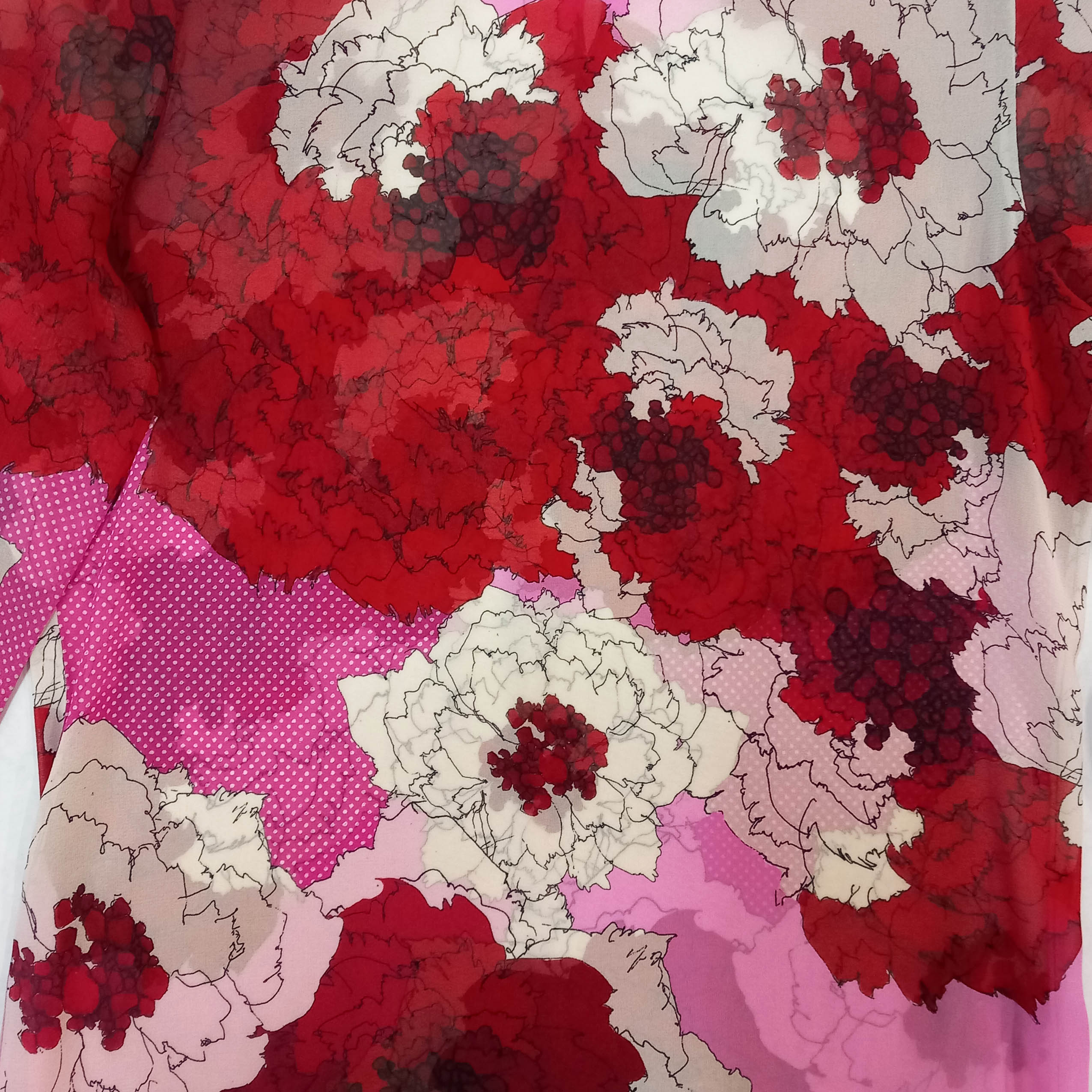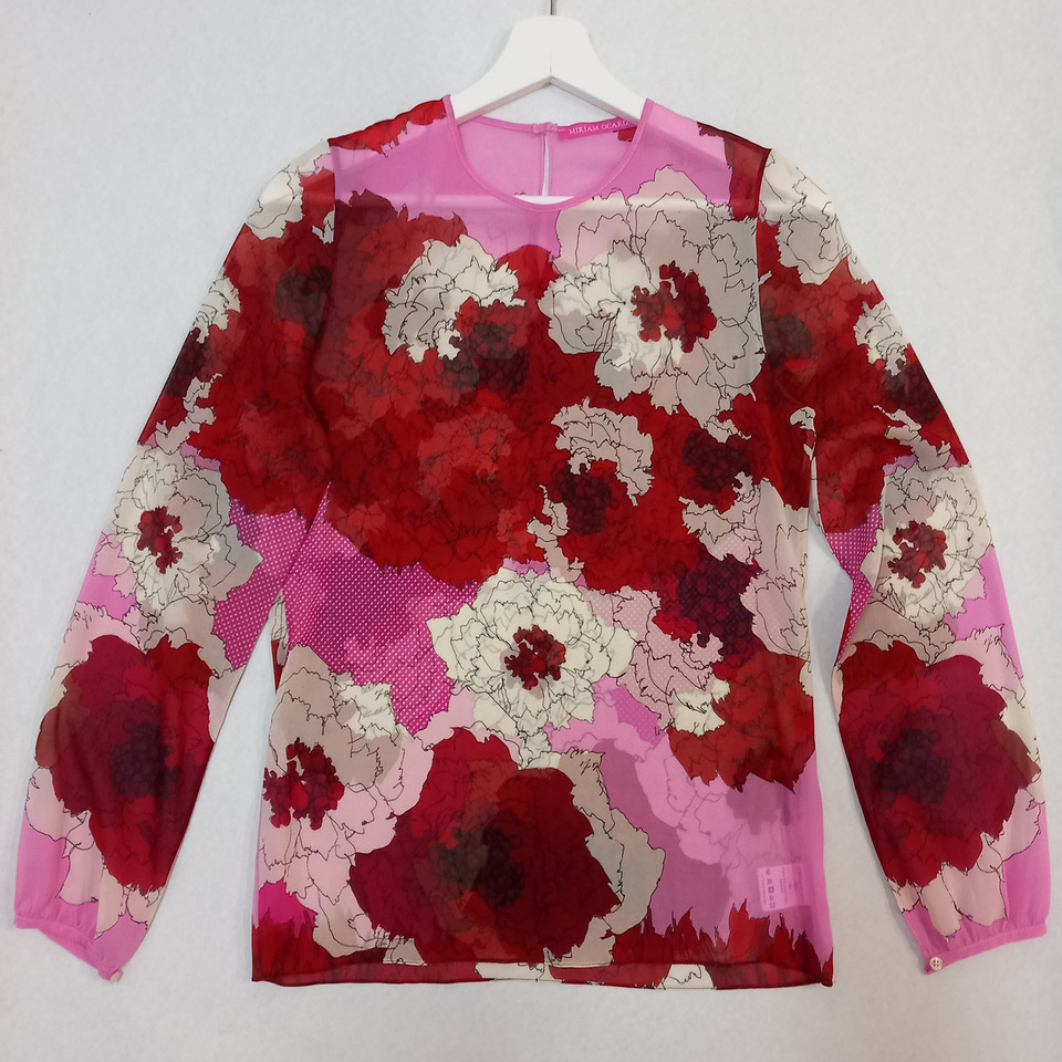 Made of elastic georgette (silk 100%), which gives it a formal and delicate style. At the same time, the elasticity of the lycra makes it practical and elegant. The exclusive print by Miriam Ocariz, its simple pattern and hight quality finish make this garment combine sophistication and functionality.